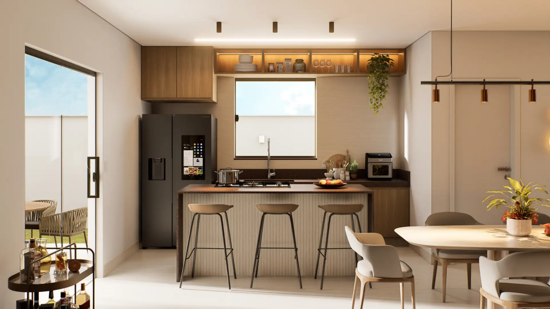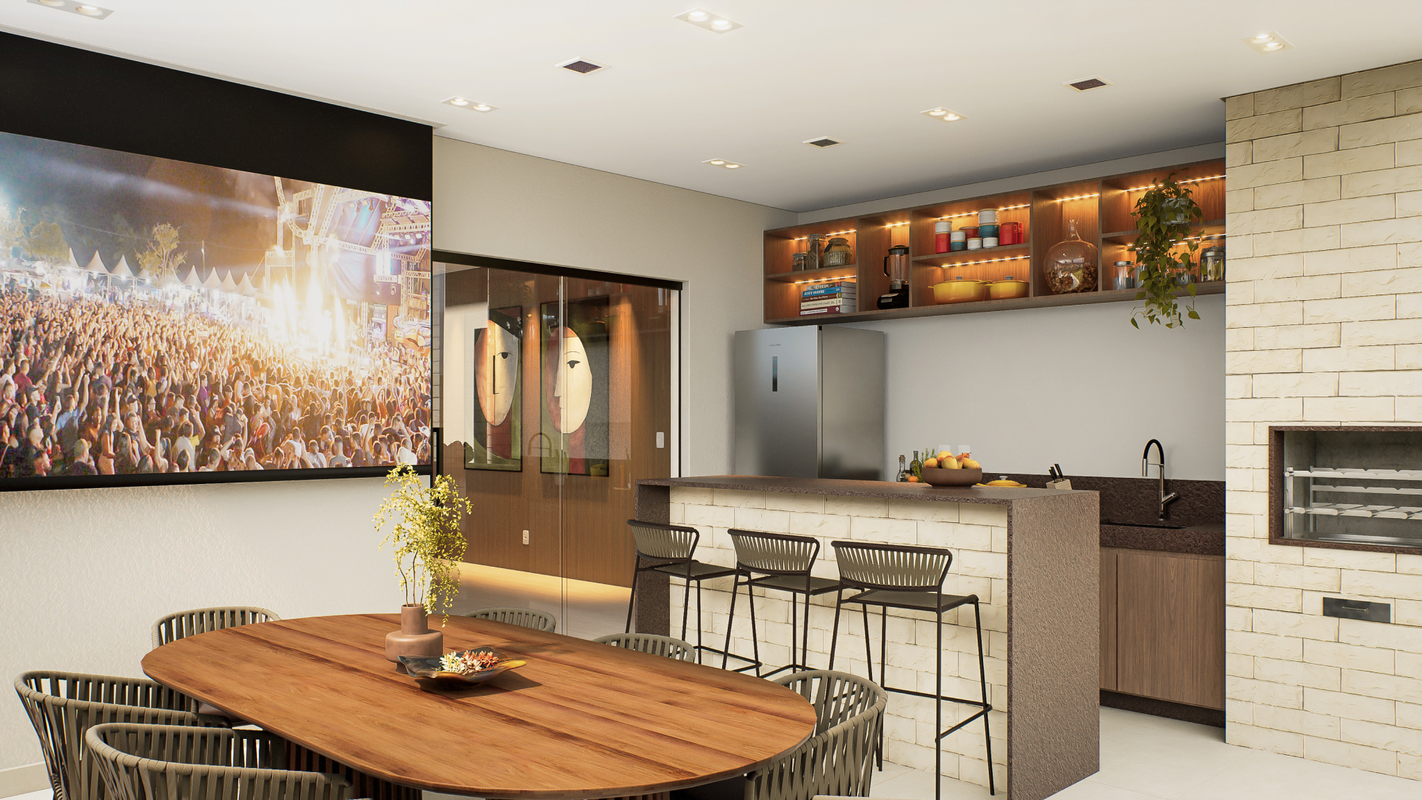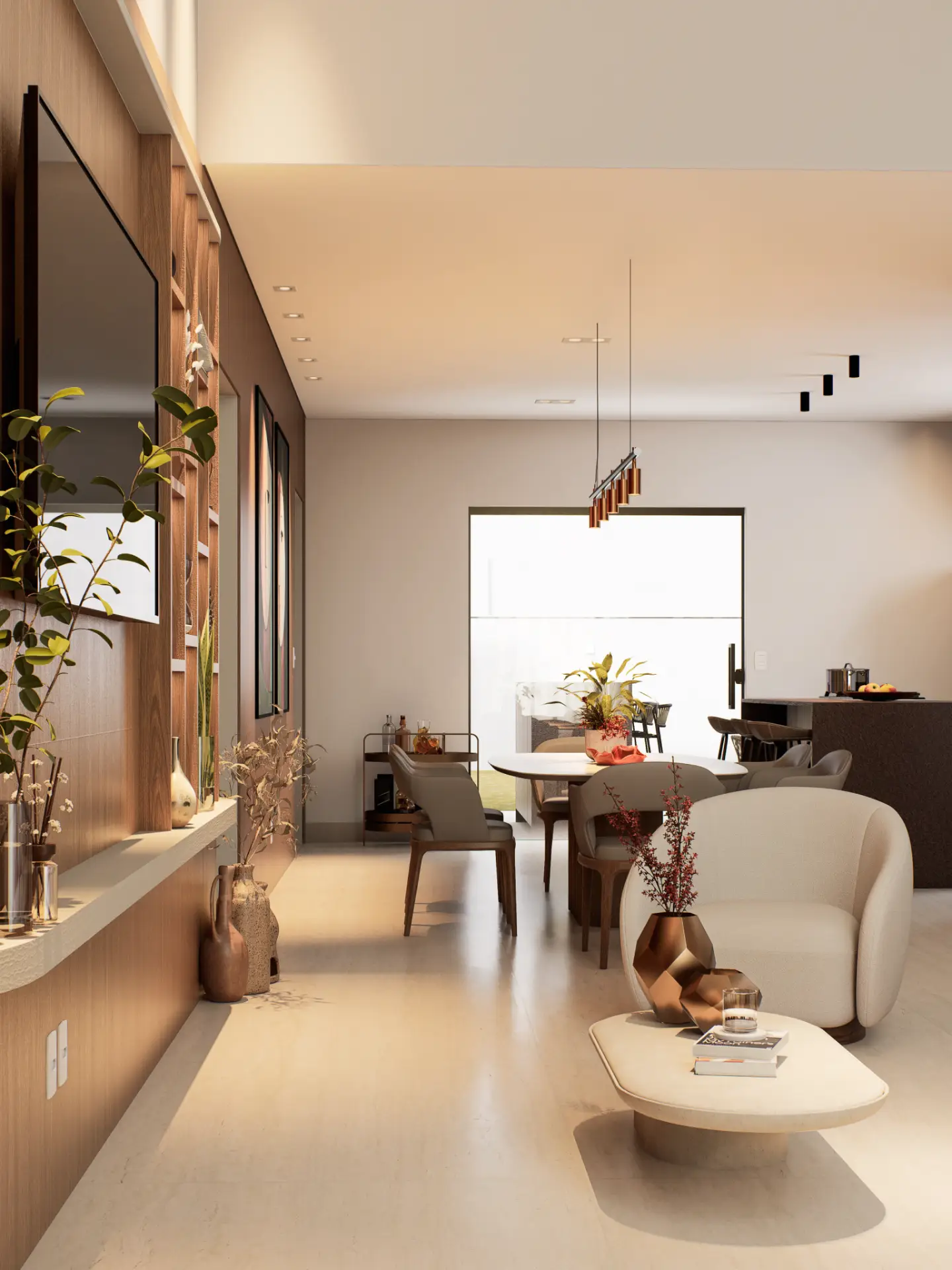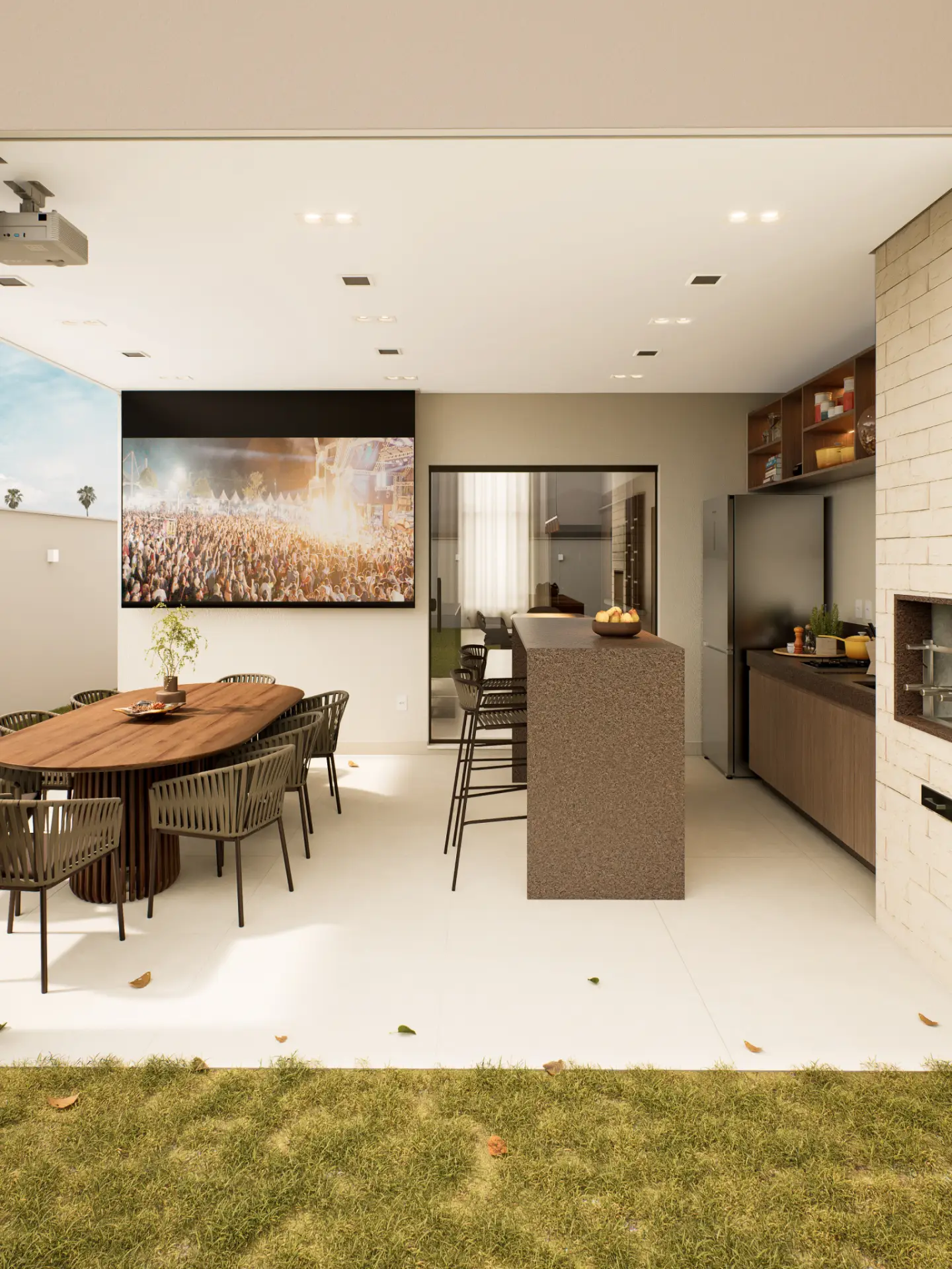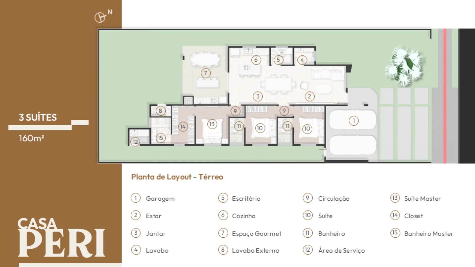 Planejado em pavimento único, o projeto soluciona a disposição da casa em um terreno predominantemente plano, e permite a utilização de todo ambiente externo para jardins, acessos e lazer. Sua horizontalidade, torna a casa elegante e leve, sendo um dos destaques para o projeto compacto.