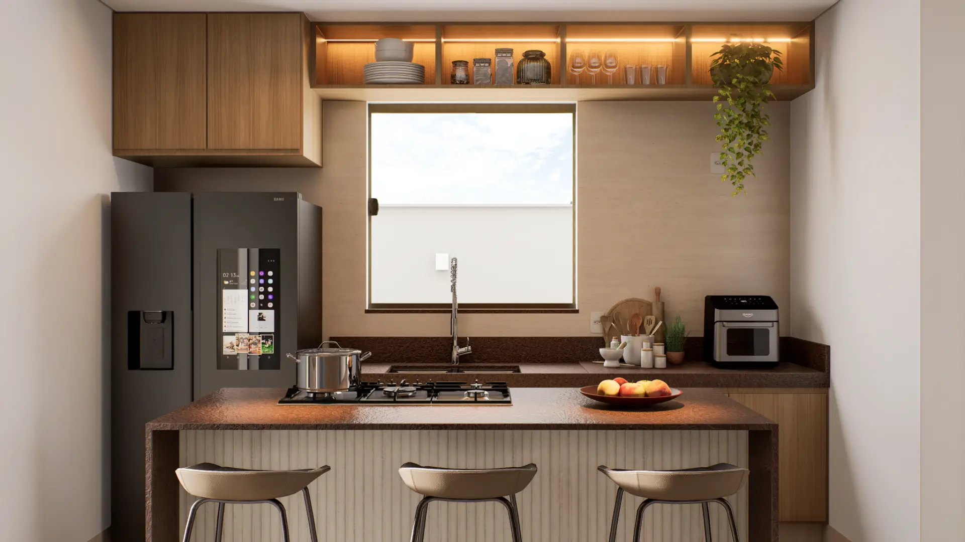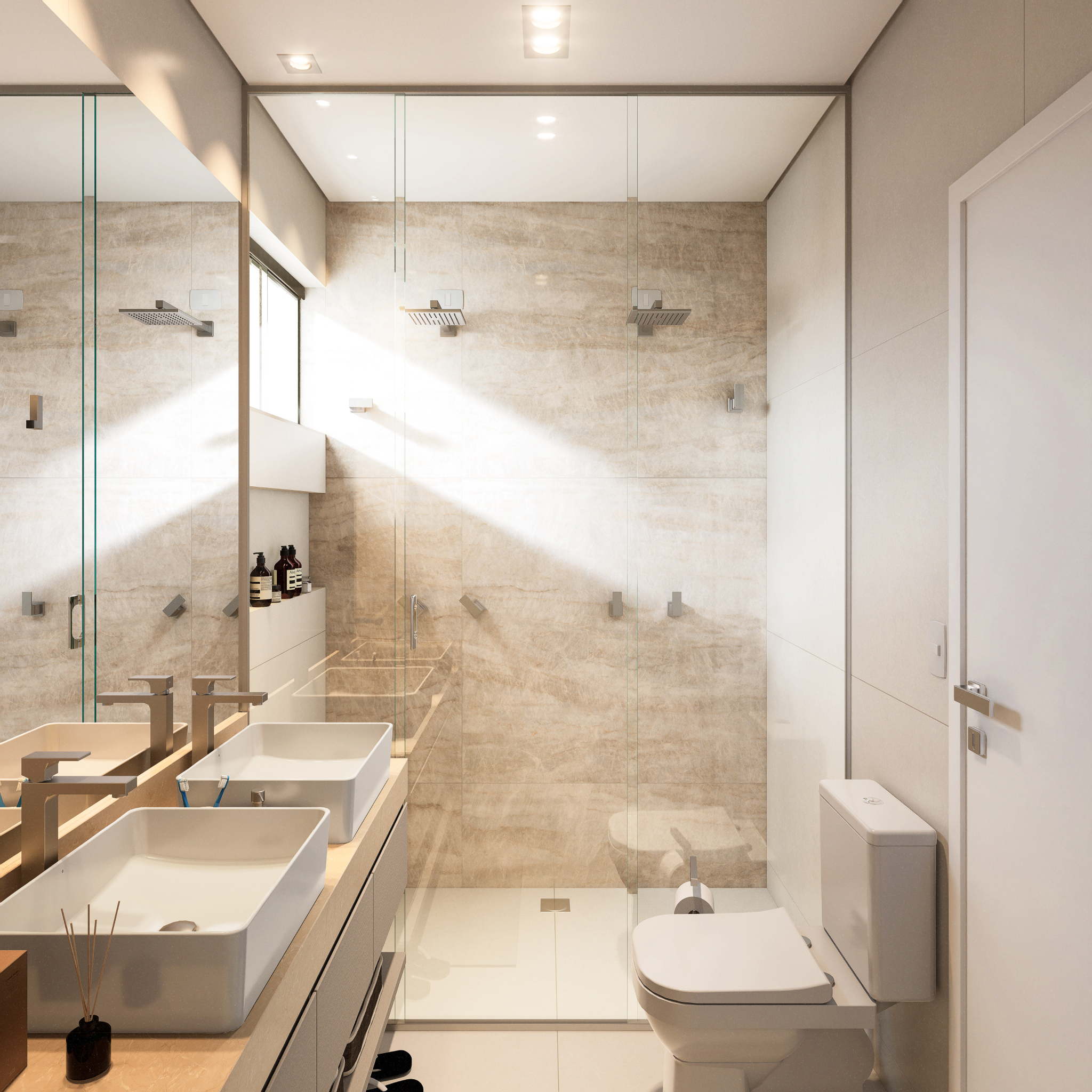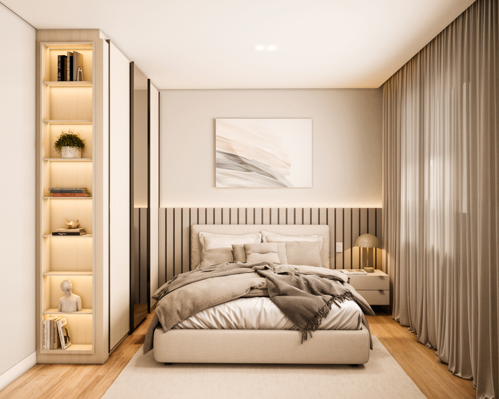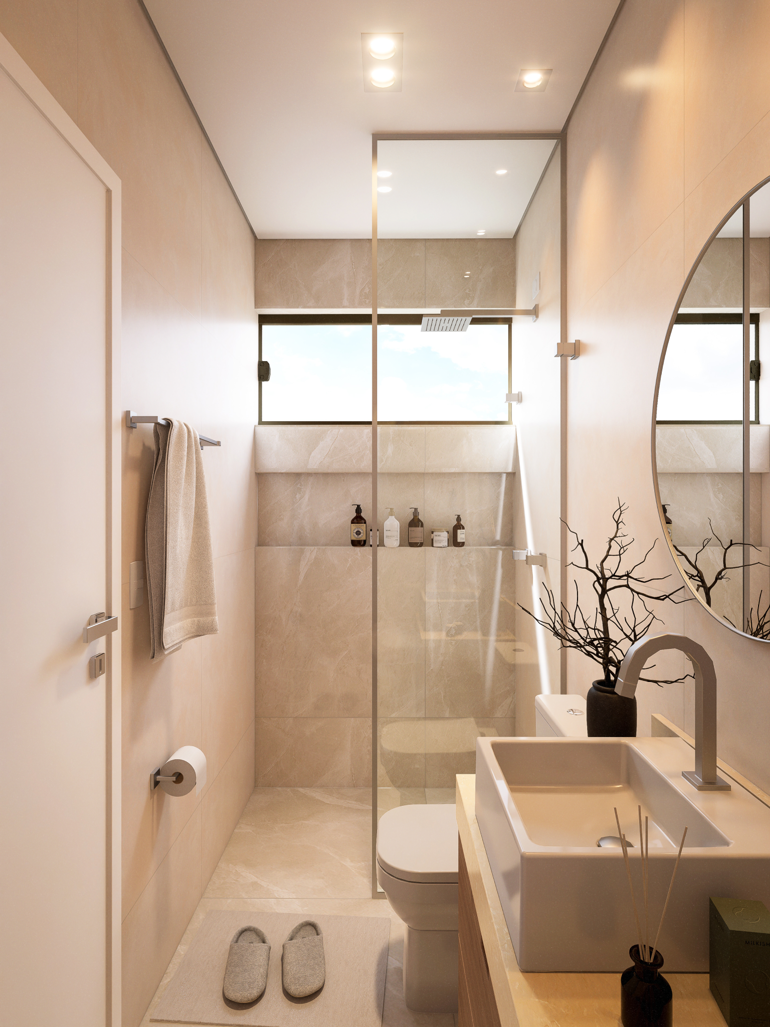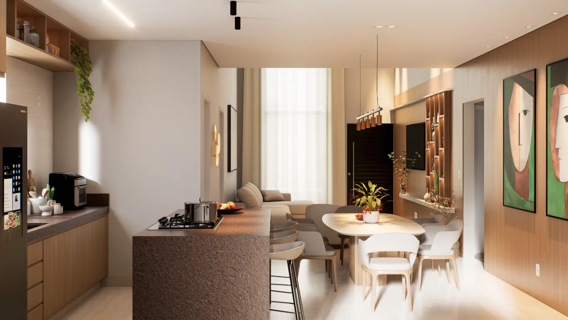 Planejado em pavimento único, o projeto soluciona a disposição da casa em um terreno predominantemente plano, e permite a utilização de todo ambiente externo para jardins, acessos e lazer. Sua horizontalidade, torna a casa elegante e leve, sendo um dos destaques para o projeto compacto.
